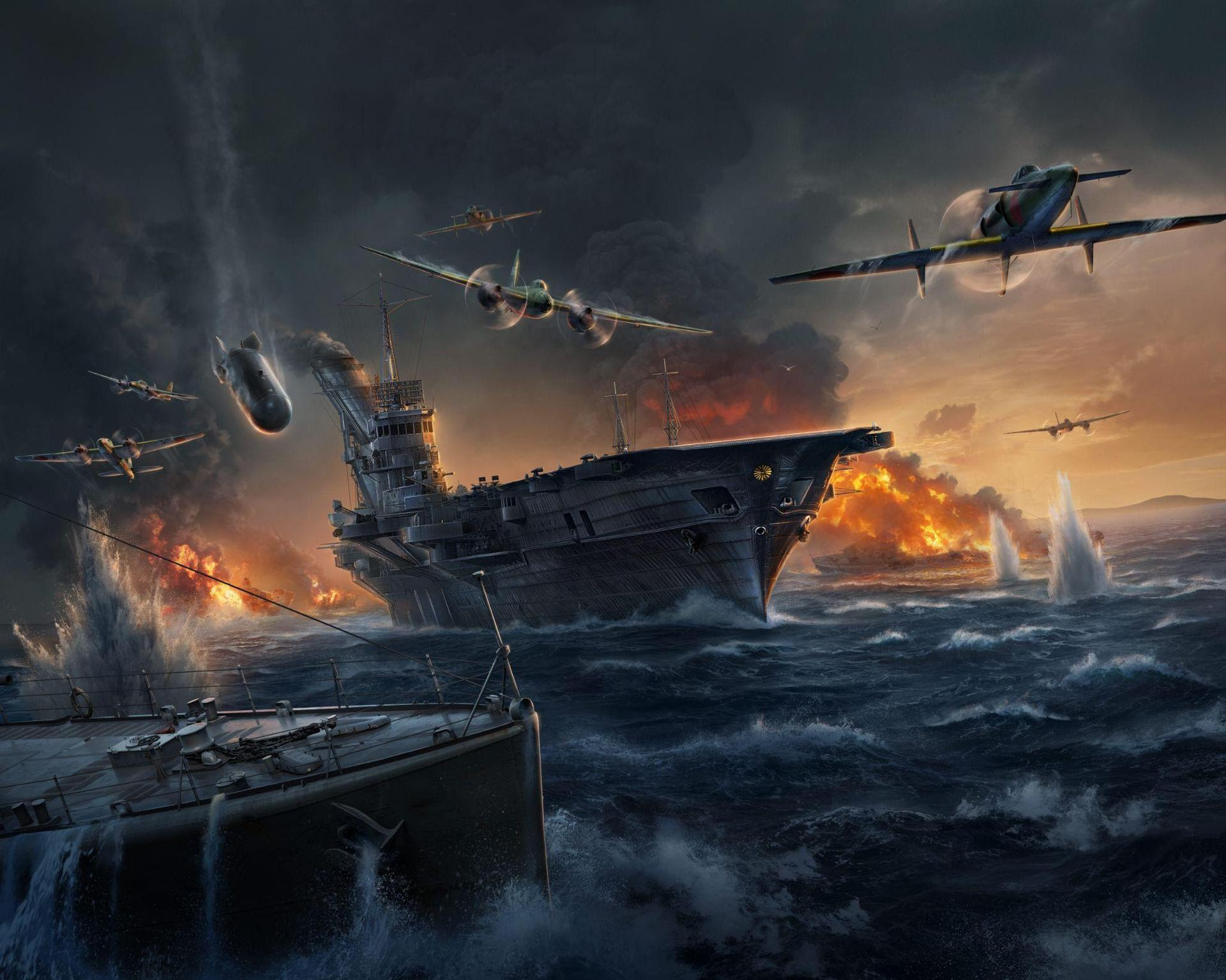 Помимо постановщиков мин, на вооружении у авианосцев штурмовики с ОФ-ракетами и бомбардировщики с большим количеством ББ-бомб для коврового бомбометания.