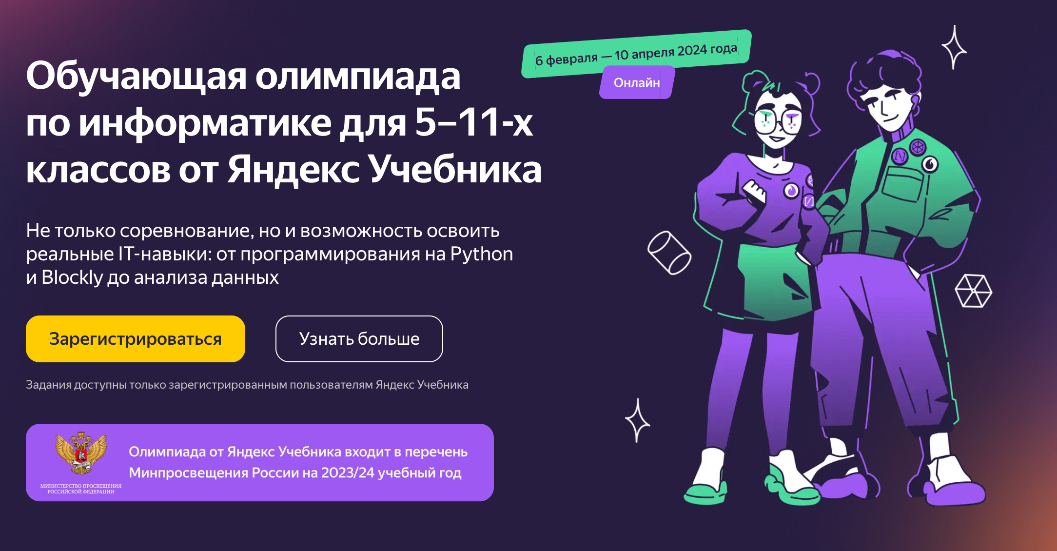 Олимпиада Яндекс Учебника по информатике включена в список рекомендуемых Минпросвещения России.