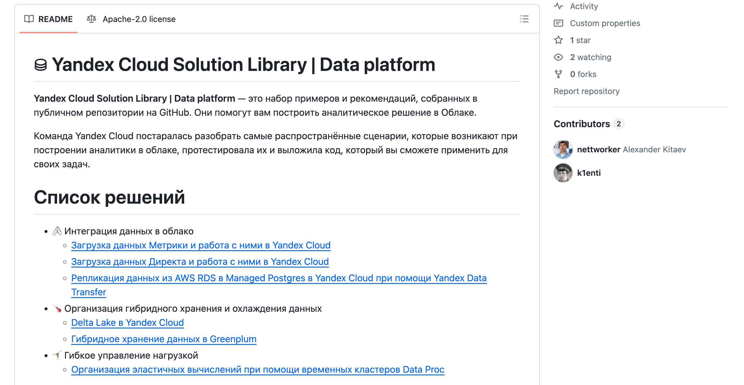 Yandex Cloud, облачная платформа, разработала библиотеку рекомендаций, которая поможет компаниям работать с данными на всех этапах их обработки: от хранения и обработки до анализа и визуализации. Этот набор включает в себя практические руководства, примеры кода, документацию и обучающие курсы, которые помогут компаниям быстрее и проще разрабатывать корпоративные хранилища данных, аналитические системы и многое другое в облаке. Библиотека Data Platform Solution Library уже доступна на GitHub.