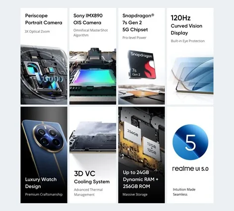 Смартфон поступит в продажу с новым интерфейсом Realme UI 5.0 на базе Android 14. В нем реализовано множество опций настройки, позволяющих пользователям менять темы и значки в соответствии со своими предпочтениями. Телефон оснащен встроенным в дисплей сканером отпечатков пальцев, который работает быстро и четко.
