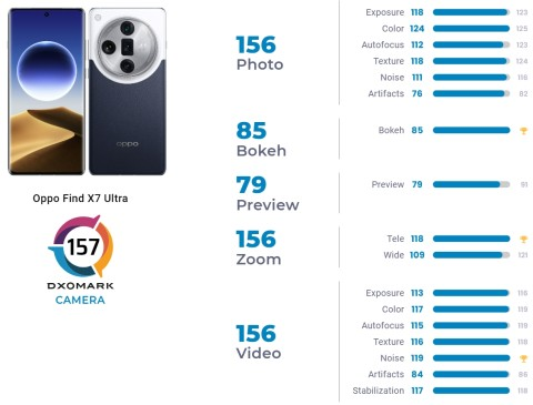 Специалисты наградили Find X7 Ultra высшими оценками в части использования телевика, контроля шума, размытия заднего фона в портретном режиме, съемки людей и фотографии в помещении, а также при недостатке света. Не обошлось и без нюансов: представители DxOMark подметили небольшую потерю детализации при съемке на сверхширокоугольную камеру и с близкого расстояния. Не осталась незамеченной неестественная обработка текстур и нестабильная экспозиция на видео. Все же флагман в итоге сумел набрать аж 157 баллов и разделил первое место в рейтинге камерофонов с Huawei Mate 60 Pro+.