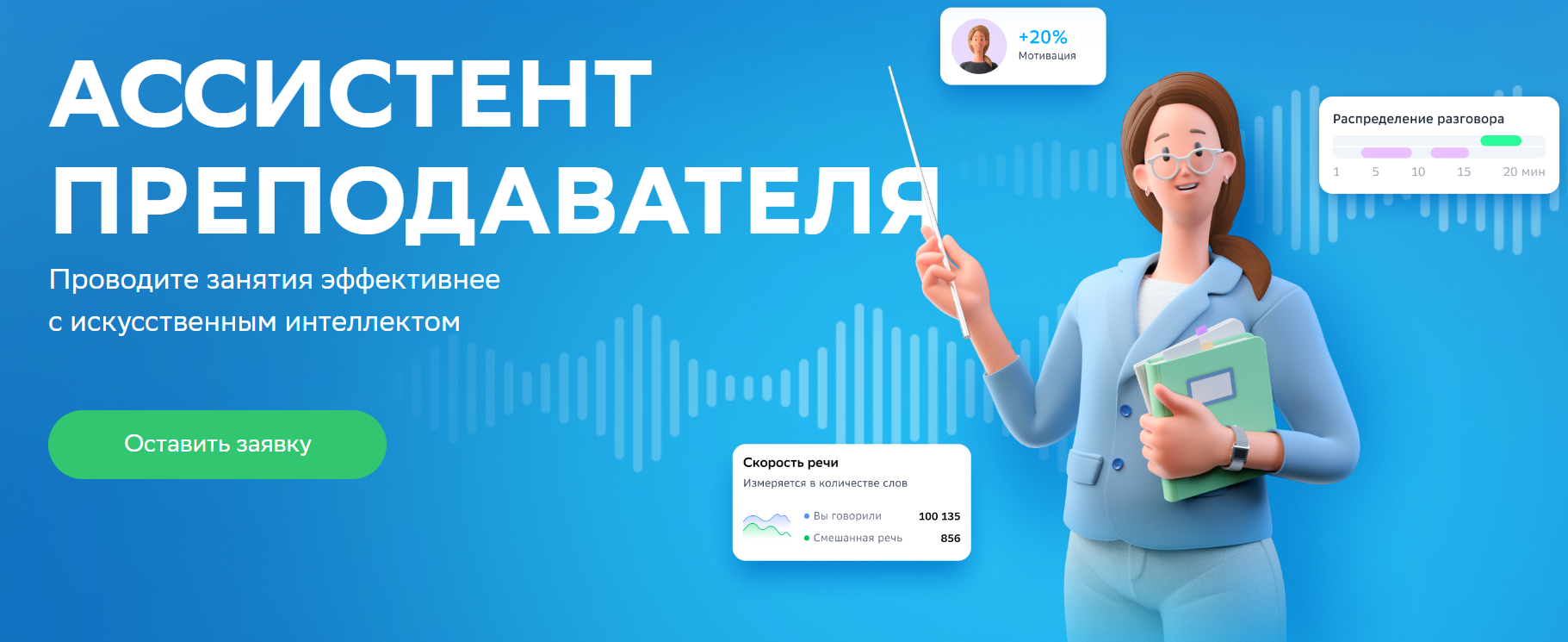Новый сервис СберОбразования автоматически переводит аудиозапись урока в текст, анализирует и предоставляет детальные отчеты урока. В ходе сессии на Московском международном Салоне образования был представлен «Ассистент преподавателя» — AI-сервис, способный автоматически переводить аудиозапись урока в текст, анализировать и предоставлять детальные отчеты урока в виде его различных характеристик (распределение времени на уроке, использование разных приемов общения, скорость речи преподавателя и пр.).