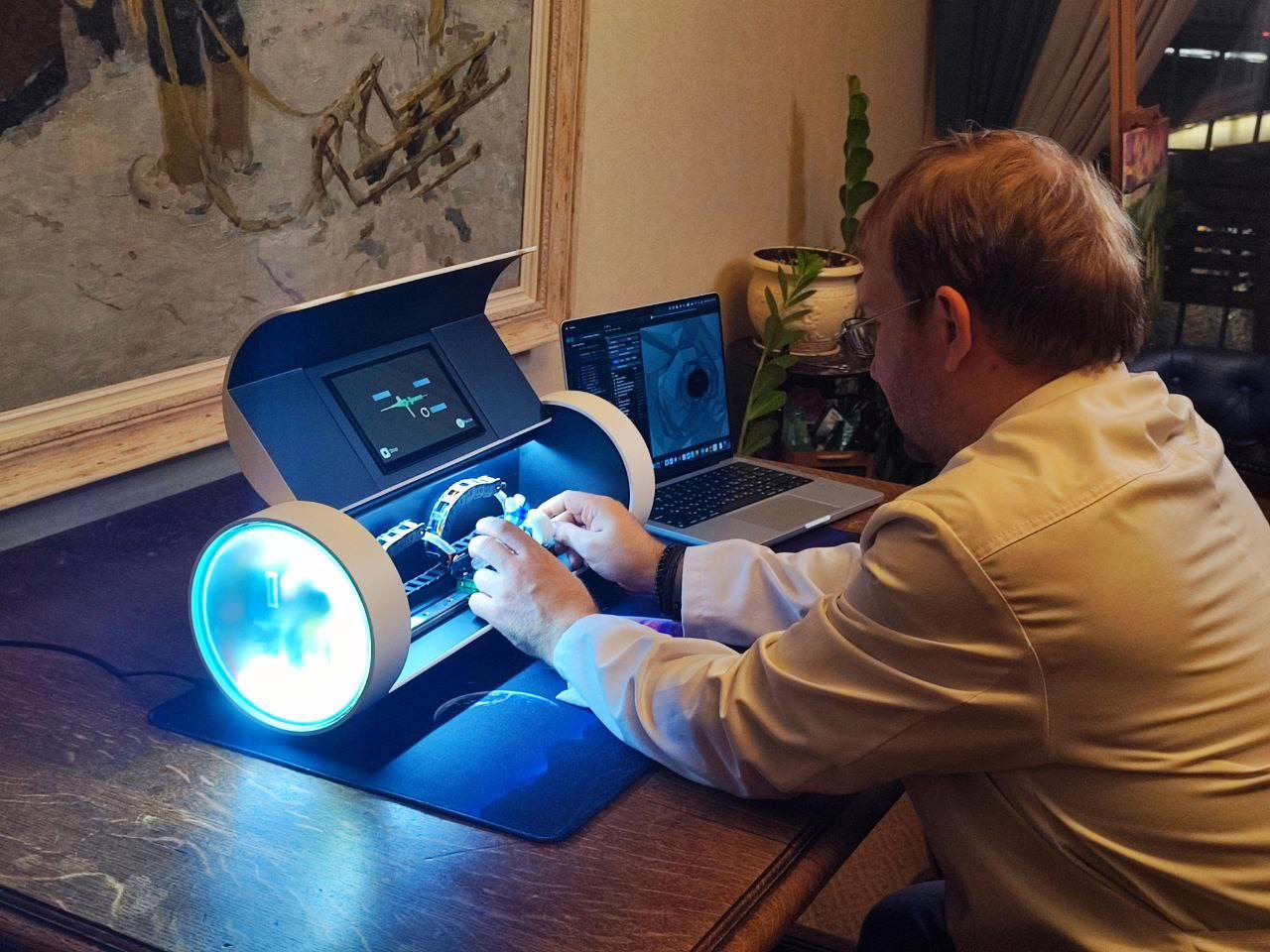 Система «Левша» — инновационный российский проект в сфере медицинских технологий, широко использующий возможности роботизации, искусственного интеллекта и дополненной реальности. Система состоит из трех элементов: роботизированного устройства, с помощью которого хирурги смогут удаленно проводить операции на мозге; тренажера, на котором врачи смогут тренироваться перед началом работы в операционной вмешательства; и сервиса персонализированной хирургии, позволяющему протестировать оперативное вмешательство на сосудах мозга данного конкретного пациента до проведения самой операции. Система предназначена для операций, проводимых эндоваскулярным методом — то есть с помощью микроскопических хирургических инструментов, которые вводятся в кровеносные сосуды. В рамках своего доклада в Абу-Даби Александра продемонстрировала, как работает 3D-симулятор сосудов, используемый в «Левше».