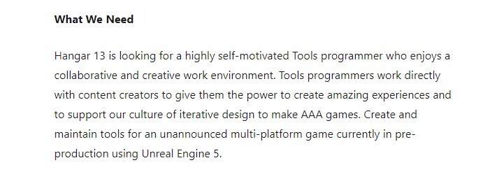 В команду требуется инженер инструментария Unreal Engine 5. В описании вакансии название игры не фигурирует, но вполне вероятно, что речь идет именно о новой части франшизы Mafia. Кроме того, объявление о вакансии подтвердило сообщение Katoku о том, что в игре будет использован движок Unreal Engine 5. Ни 2K, ни Hangar 13 вакансию пока никак не прокомментировали.