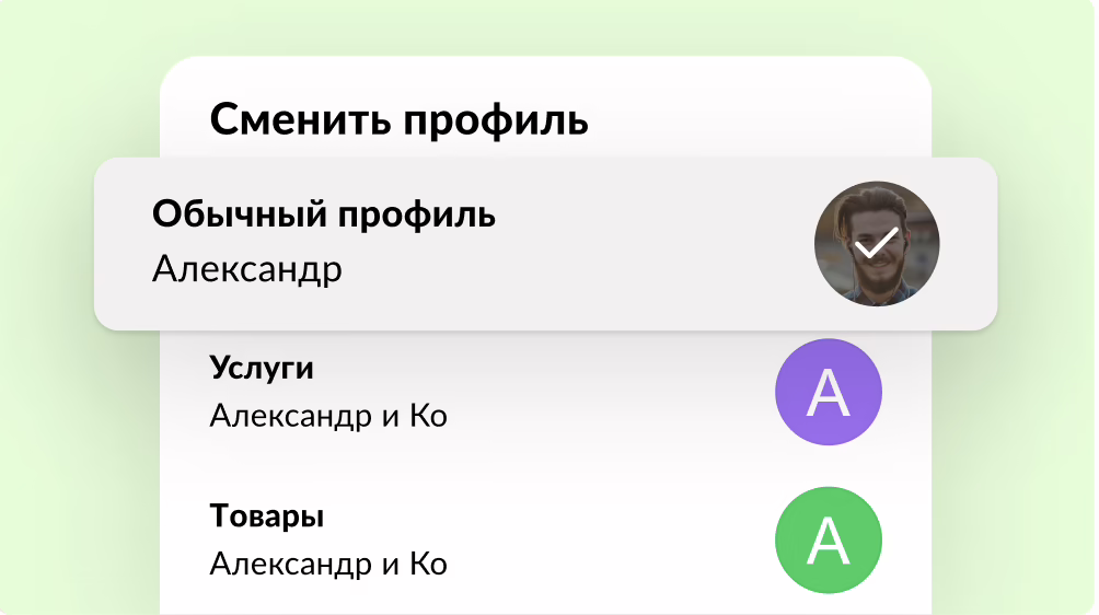 Внутри связки, кроме обычного профиля, можно создать до семи профессиональных — по одному в категориях «Товары», «Работа» и «Транспорт» и два в категориях «Недвижимость», «Услуги». Для пользователей появляется возможность разделить деятельность: например, профессиональные услуги и общение с клиентами в одном профиле, а продажа личных товаров — в другом. При этом если клиент откроет ваш аккаунт, он не узнает, что с ним связаны другие личные кабинеты.