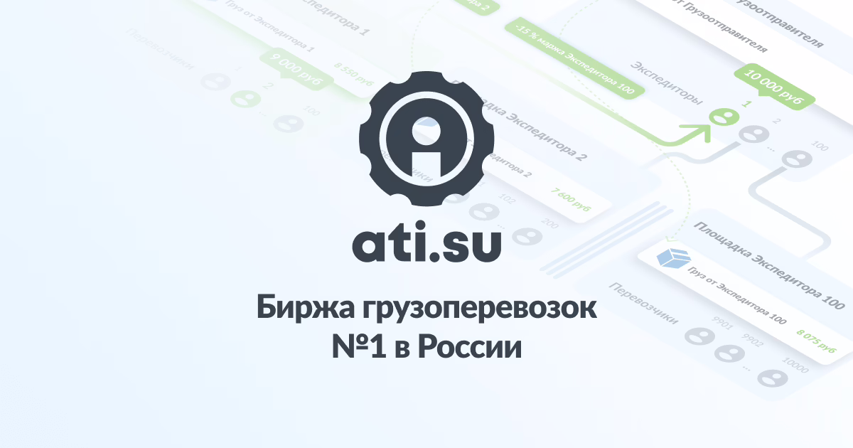 О Бирже ATI.SU: Биржа грузоперевозок ATI.SU – крупнейшая биржа автомобильных грузоперевозок, оказывающая услуги на территории России, в республике Беларусь, Казахстане и других странах СНГ. Количество зарегистрированных пользователей превысило 300 тысяч. Ежедневно на Бирже размещается около 300 тысяч грузов. В постоянном доступе находится более 100 тысяч свободных (попутных) машин.
