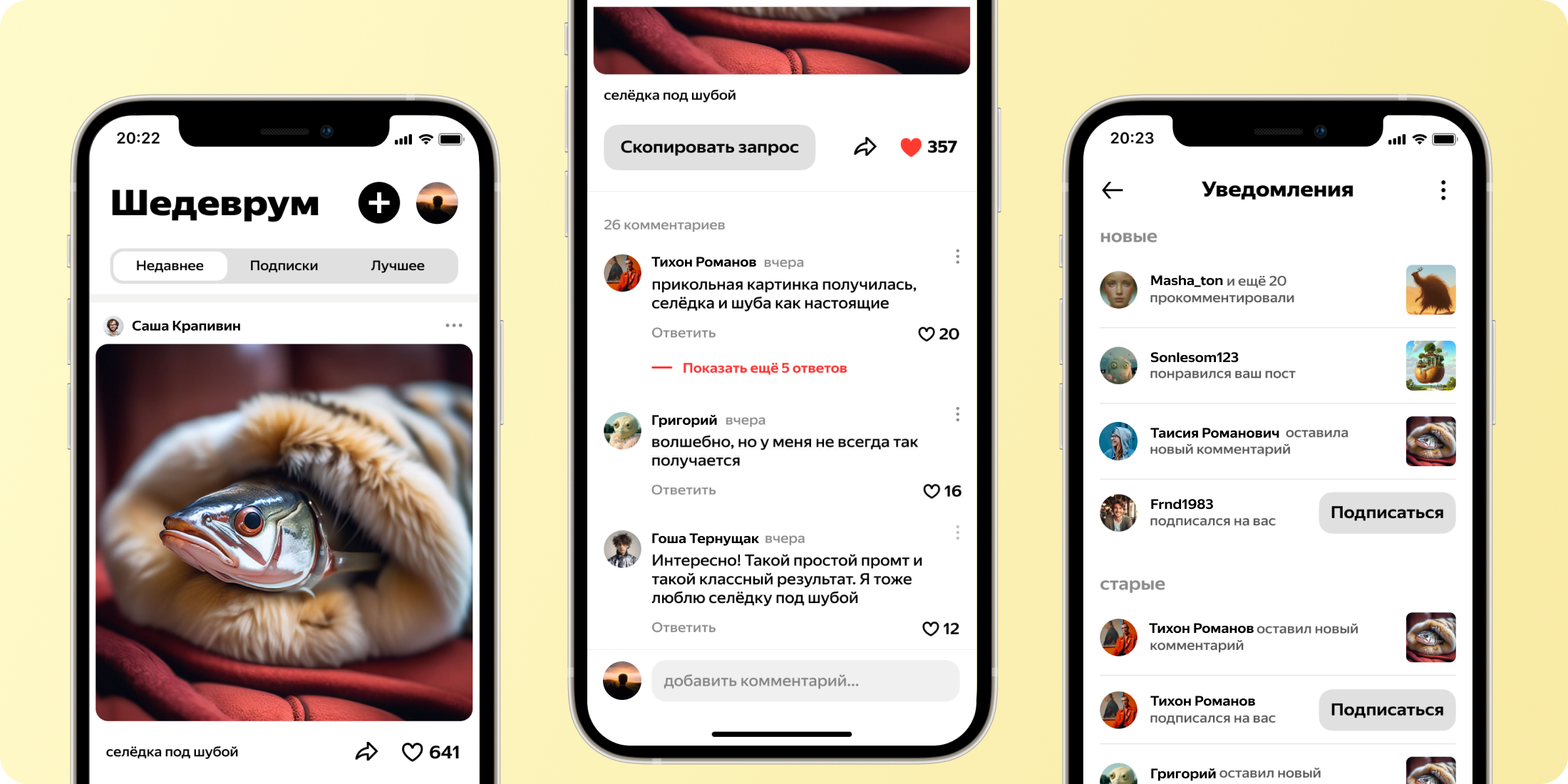 В приложении Шедеврум появились комментарии. Пользователи смогут обсуждать друг с другом публикации, которые по их текстовым запросам создают нейросети Яндекса. Одна из них генерирует картинки, а другая — YandexGPT (YaLM 2.0) — позволяет получать содержательные посты с заголовком и подходящей по смыслу иллюстрацией. Также теперь Шедеврум есть не только на мобильных устройствах, но и в веб-версии: в ней контент доступен в режиме просмотра.
