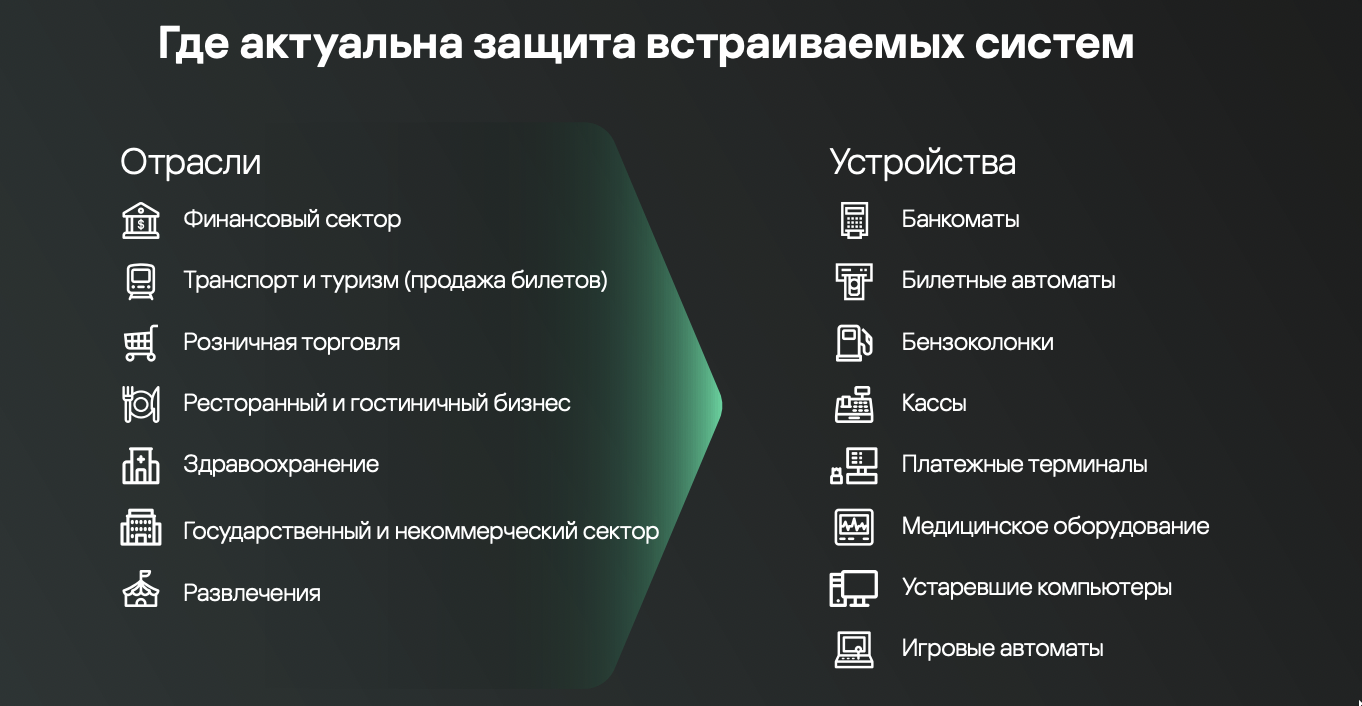 Сегодня на рынке представлено очень мало многоуровневых специализированных решений для защиты встраиваемых систем на базе Linux, по сравнению с тем, что предлагается для решений на Windows. В то же время всё больше производителей программно-аппаратных комплексов общего профиля, таких как банкоматы, PoS-системы, обращают внимание на платформы на базе Linux. При этом использование приложений для защиты обычных компьютеров во встраиваемых устройствах рискованно с точки зрения безопасности, поскольку они имеют свою специфику, а также высокие нормативные требования и стандарты безопасности данных. Именно поэтому мы расширили наше специализированное решение Kaspersky Embedded Systems Security и дополнили его защитой устройств на базе Linux.