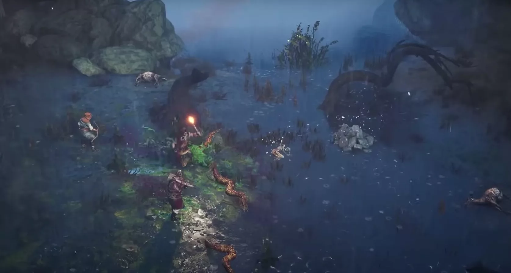 По заявлениям разработчиков, в игре будет полноценная сюжетная кампания и множество дополнительных квестов, которые будут поступать от жителей. Во время этих заданий придётся делать вылазки в открытый мир, чтобы предотвращать набеги на свою деревню, находить сокровища или просто грабить соседние поселения. Герои смогут не только применять оружие ближнего боя, но и использовать веру, чтобы призывать богов для применения заклинаний. В игре будет множество заклятий, в том числе способность, которая насылает на цель рой червей, а также умение, которое поднимает цель в воздух и ломает ей кости. А в качестве врагов будут выступать как обычные люди и звери, так и демоны подземного мира различных форм и размеров.
