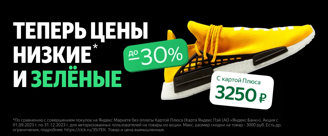 Цены на товары с дополнительной скидкой отмечены зелёным цветом, а скидка суммируется с другими акциями на маркетплейсе. Чтобы получить доступ к зелёным ценам, достаточно указать в способах оплаты виртуальную карту Пэй от Яндекса, а если карты еще нет – завести ее бесплатно прямо во время оформления покупки.