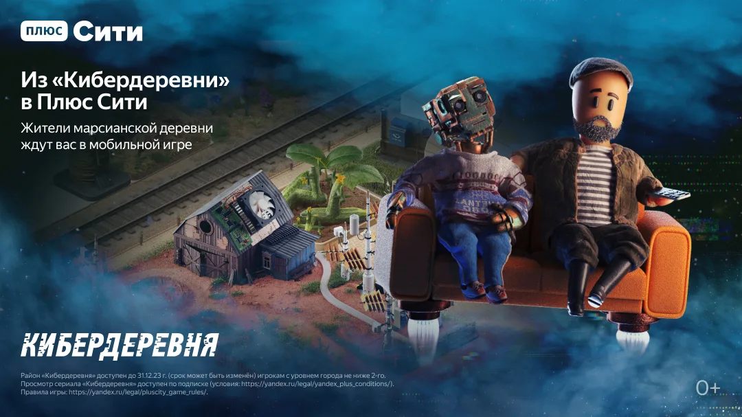Плюс Сити растет, а вместе с ним численность населения и количество новых объектов. Теперь в игре появились настоящие инопланетные гости — герои нового сериала «Кибердеревня» на Кинопоиске, а еще загадочный персонаж к выходу новой книги Пелевина в Букмейте и Добродушный шар, летающий над Плюс Сити.