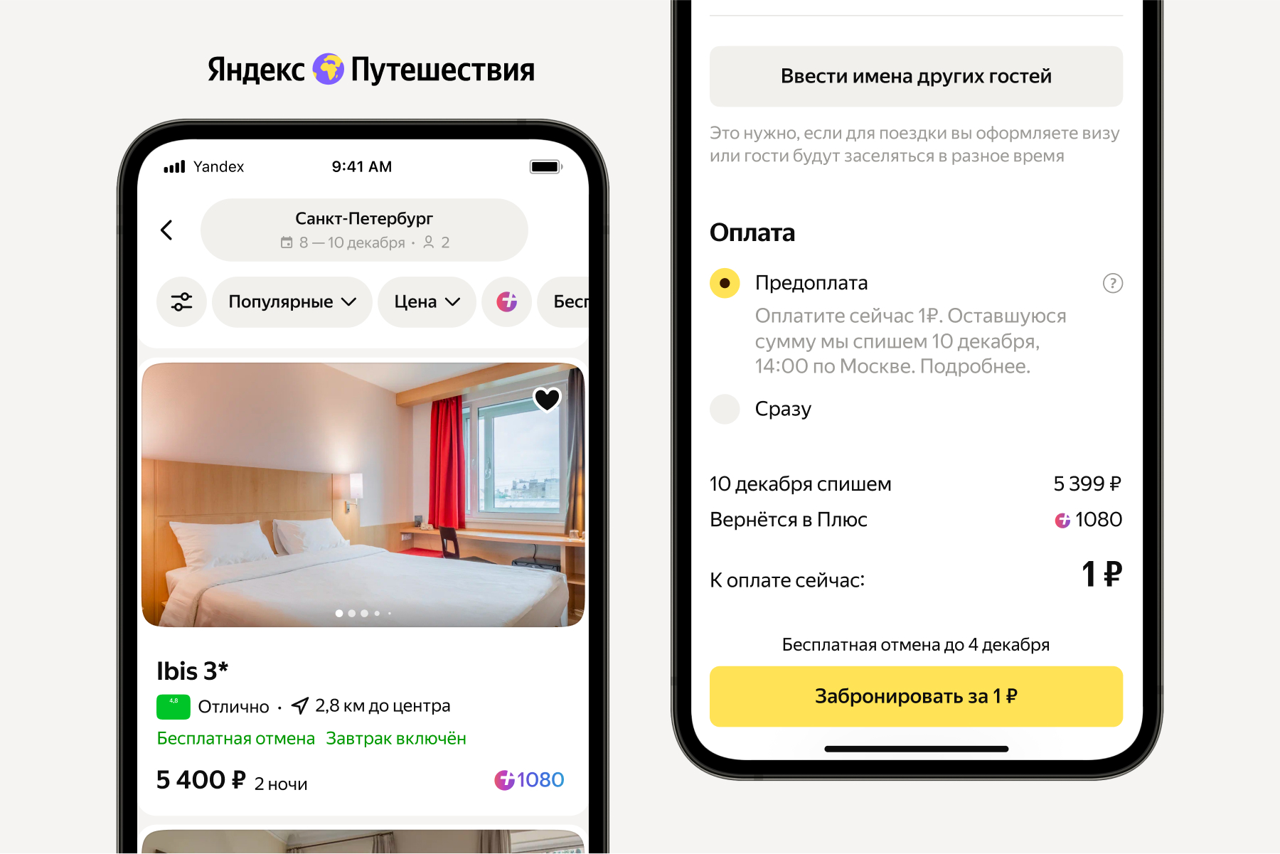 Не пропустить оплату бронирования перед поездкой поможет автосписание — если пользователь забудет внести остаток, списание необходимой суммы произойдет автоматически с указанной карты. Перед этим придут уведомления в приложении и сообщение на номер телефона с предупреждением о будущей операции. Это позволит проконтролировать наличие денег на карте и в дальнейшем завершить оплату проживания. Забронировать отели можно на сайте и в мобильном приложении. Для оплаты подойдет карта любого российского банка. Пользователи Яндекс Путешествий получают кешбэк до 20% от суммы бронирования баллами Яндекс Плюса — их можно тратить в других сервисах Яндекса.