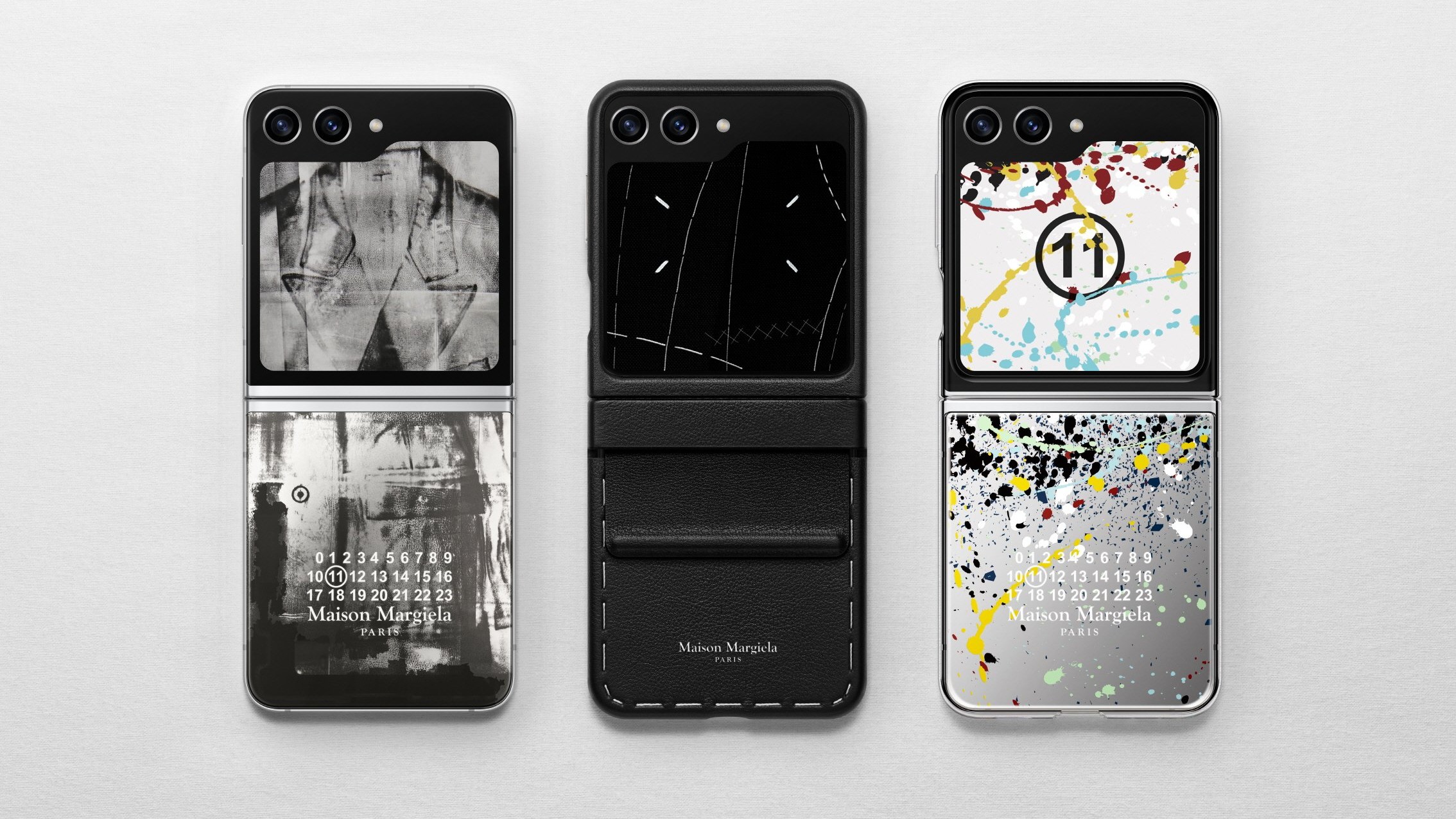 Сегодня же Samsung анонсировала сотрудничество с модным домом Maison Margiela и выпуск Galaxy Z Flip 5 Special Edition. Это уже вторая коллаборация обеих марок – ранее они совместно выпустили специальную версию Galaxy Z Flip4 Maison Margiela edition. Как заявляет бренд, задняя панель устройства будет напоминать детали внутренней стороны куртки Maison Margiela с серебряными и металлическими эффектами. Внутри кожаного чехла-книжки будут находиться этикетки с логотипом из натуральной черной кожи и ткани. Устройство будет комплектоваться двумя карточками Flipsuit, украшенными брызгами красок, а также серебряной пластиной с дизайном номера модного бренда. Если прикрепить эту пластину к задней части Galaxy Z Flip 5, устройство изменит тему, показывающуюся в окне Flex Window, на представленную в коллекции Artisanal от Maison Margiela. Кроме складного смартфона внешний вид упаковки этого специального выпуска также отсылает к характерному дизайну Maison Margiela с рисунком по центру. Помимо этого, модный бренд сделал фирменные обои и создал специальный пак иконок для Flip5.
